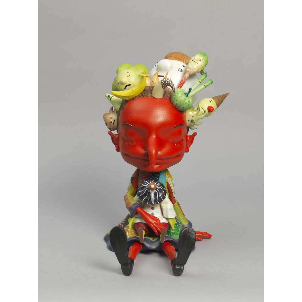 雕塑是由藝術家平面繪畫中的角色到3D立體的轉化。雕塑包裝雷射出角色線型、角色名字和一對一的限量版數於原木色硬杉木木箱上,提高收藏價值,這是一個有名字有個性的藝術衍生品。