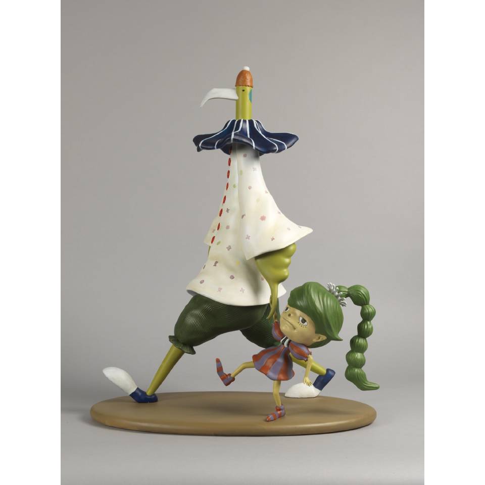 雕塑是由藝術家平面繪畫中的角色到3D立體的轉化。雕塑包裝雷射出角色線型、角色名字和一對一的限量版數於原木色硬杉木木箱上,提高收藏價值,這是一個有名字有個性的藝術衍生品。